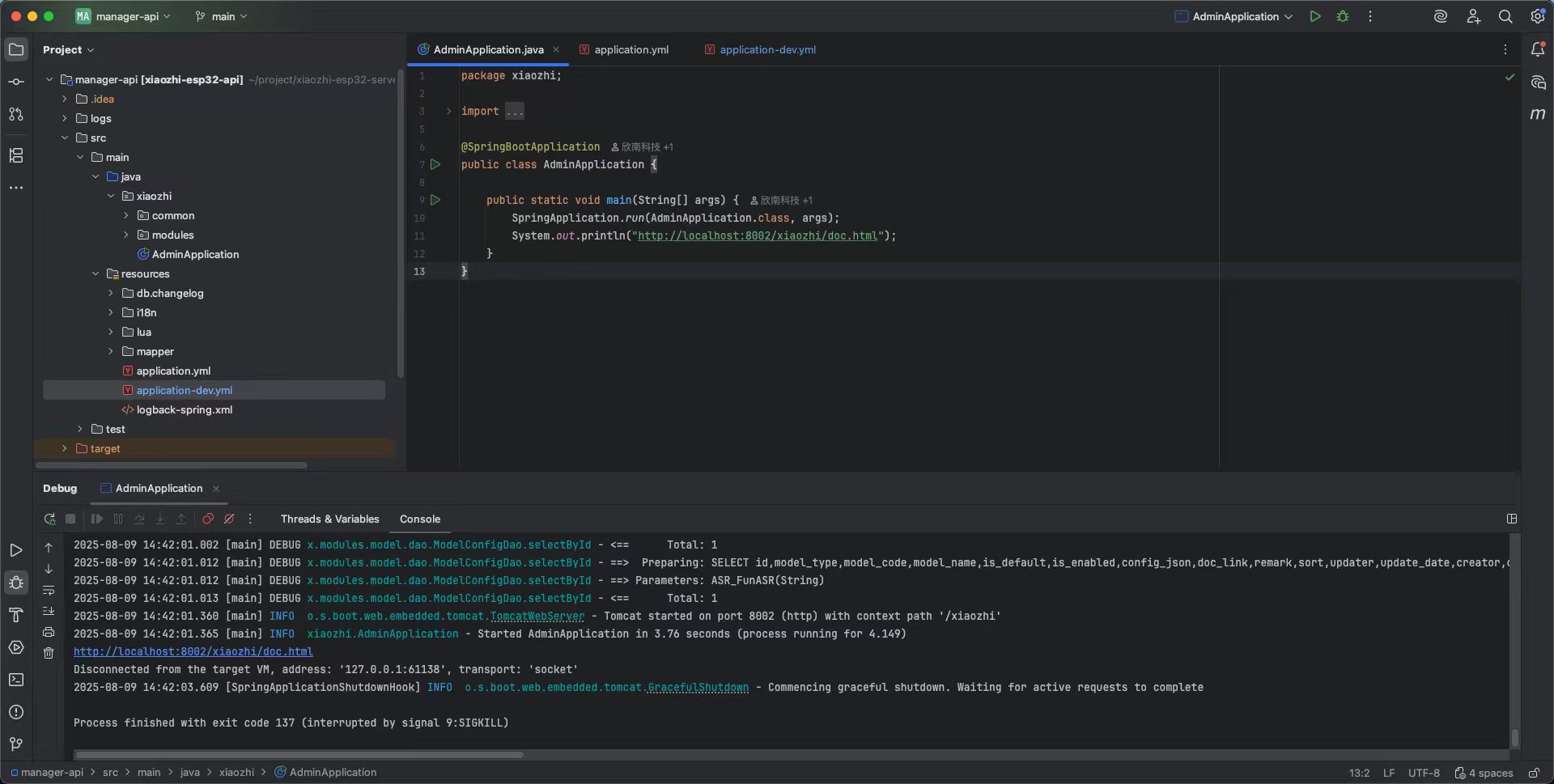 分别通过 VSCode、IDEA、PyCharm 运行管理前端、管理后端、xiaozhi-server