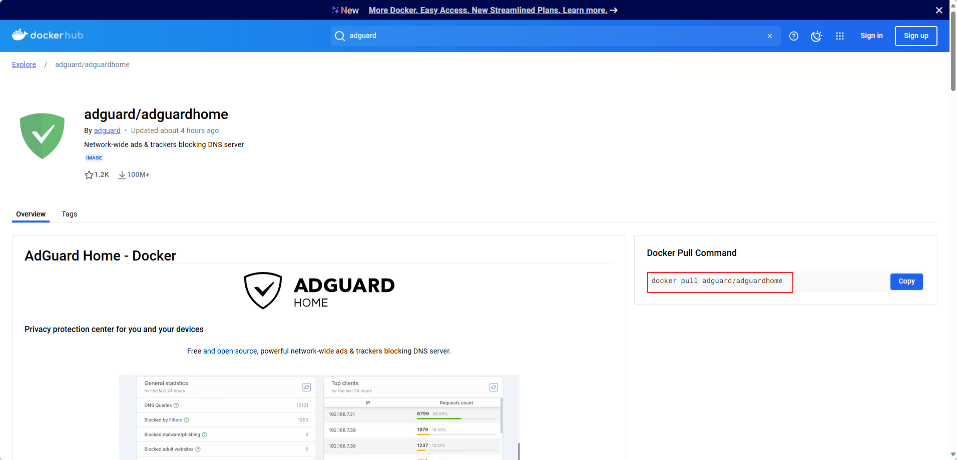 找一台服务器,运行 docker pull adguard/adguardhome 命令拉取镜像。