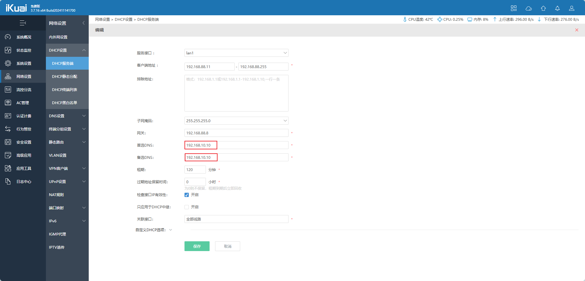 doc_1(如果配置的名称是cfbk他会加上doc_,变为doc_cfbk) - IPv4地址:我在接口管理中设置的是