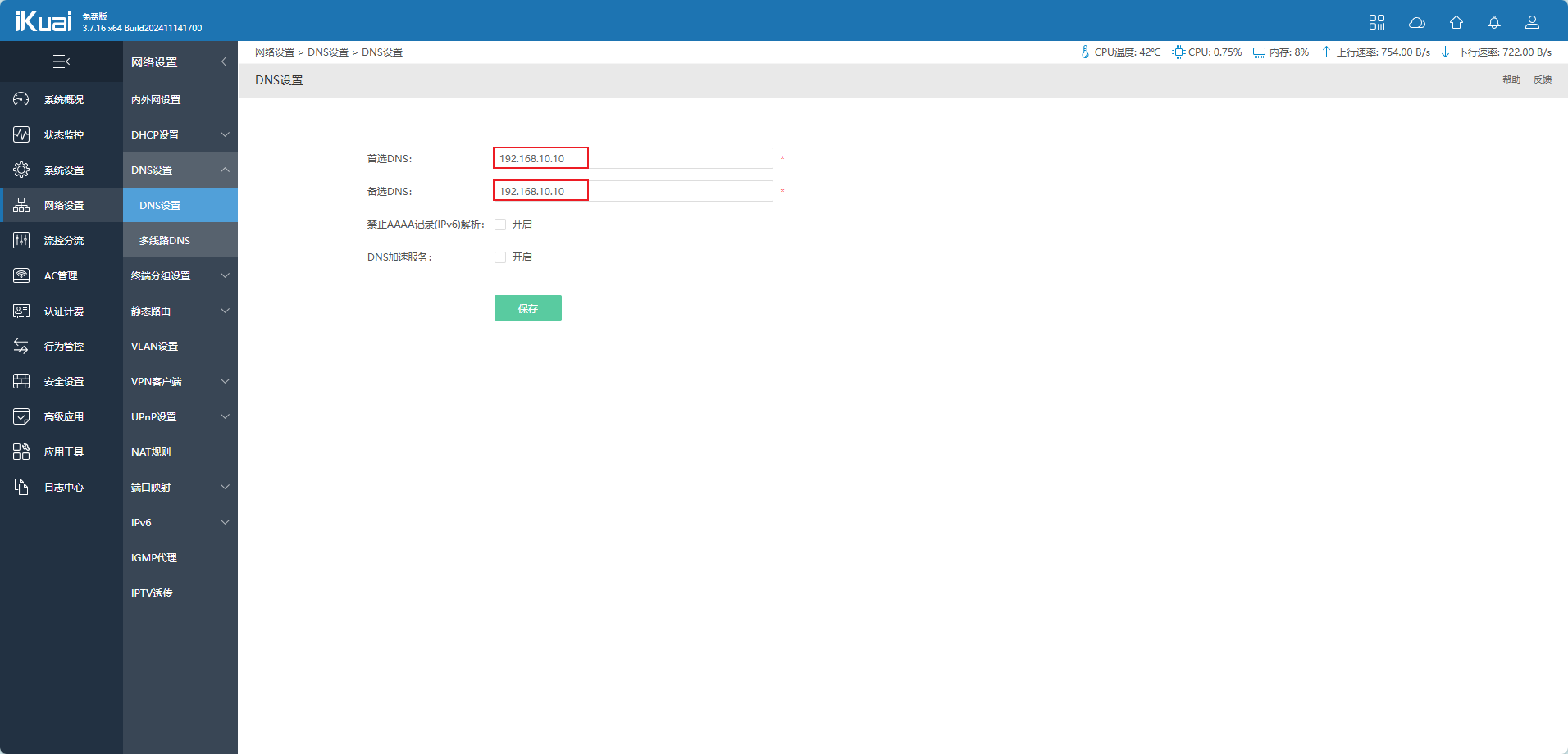 DNS服务器中的一个进行解析请求,哪个延迟低就更偏向于用哪一个。 - 并行请求:同时请求所有上游 DNS 服务器,取最快给出的响应结果,所以解析速度很快。在上游