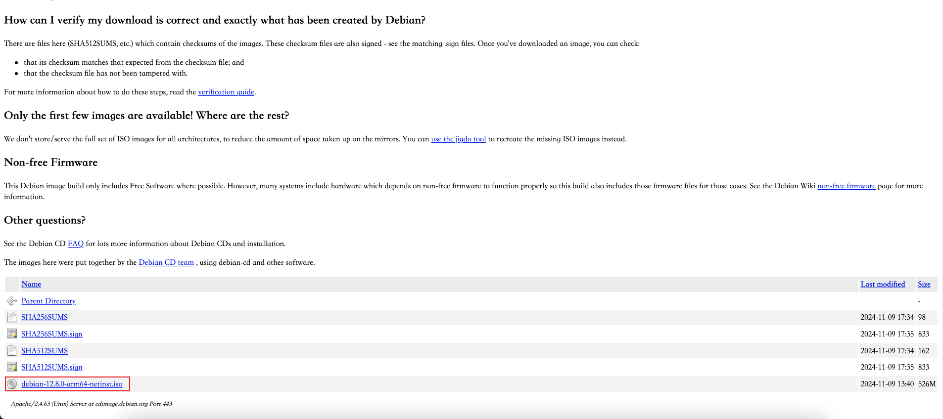 下载:https://cdimage.debian.org/cdimage/archive/12.8.0/arm64/iso-cd/