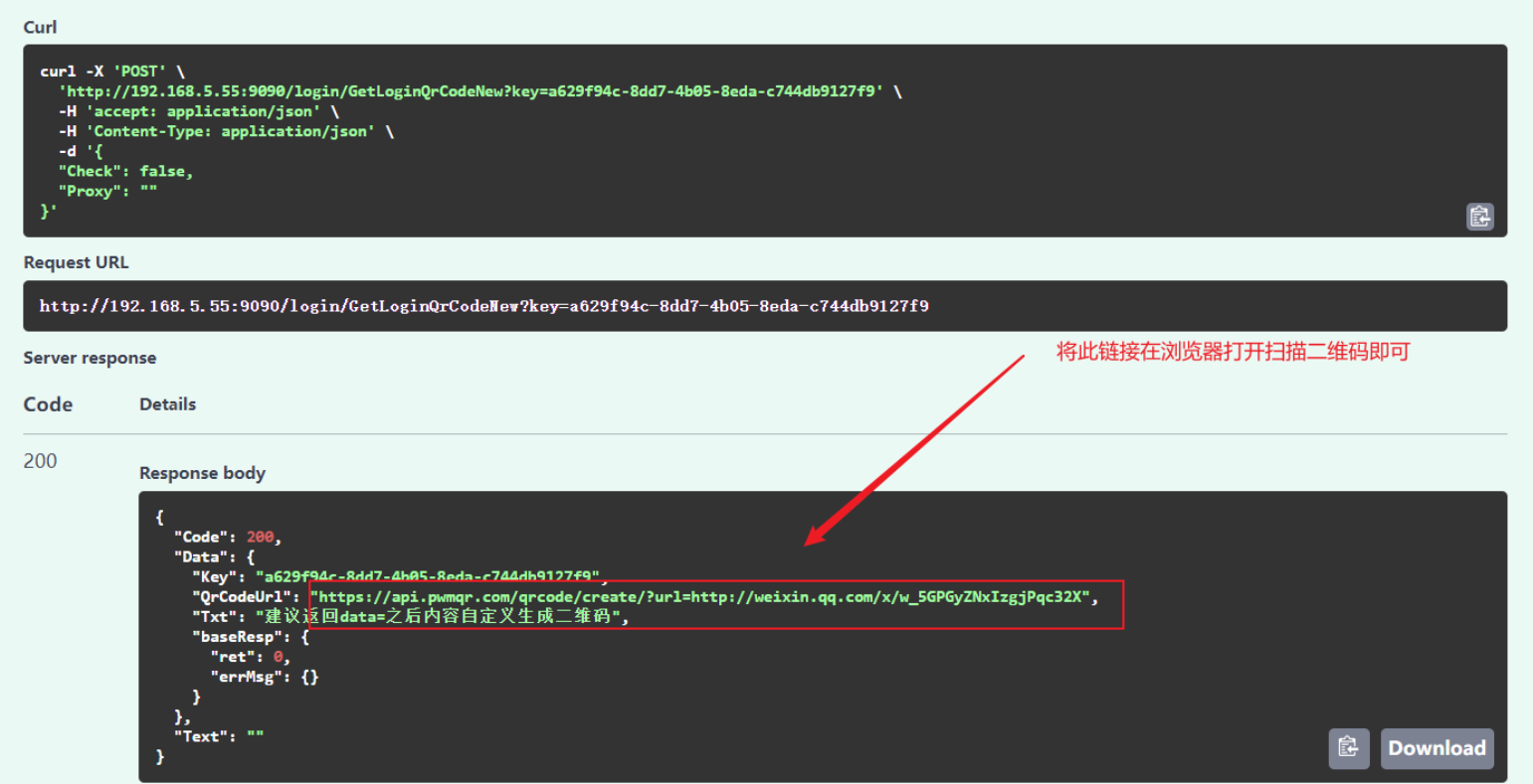 try it out /login/GetLoginQrCodeNew 接口即可(和服务器是同市或者同省)