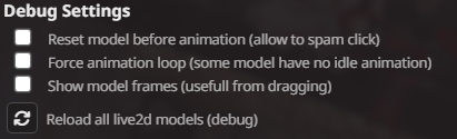 图8)这些设置帮助您控制 Live2D 模型的行为和可见性,用于调试目的。