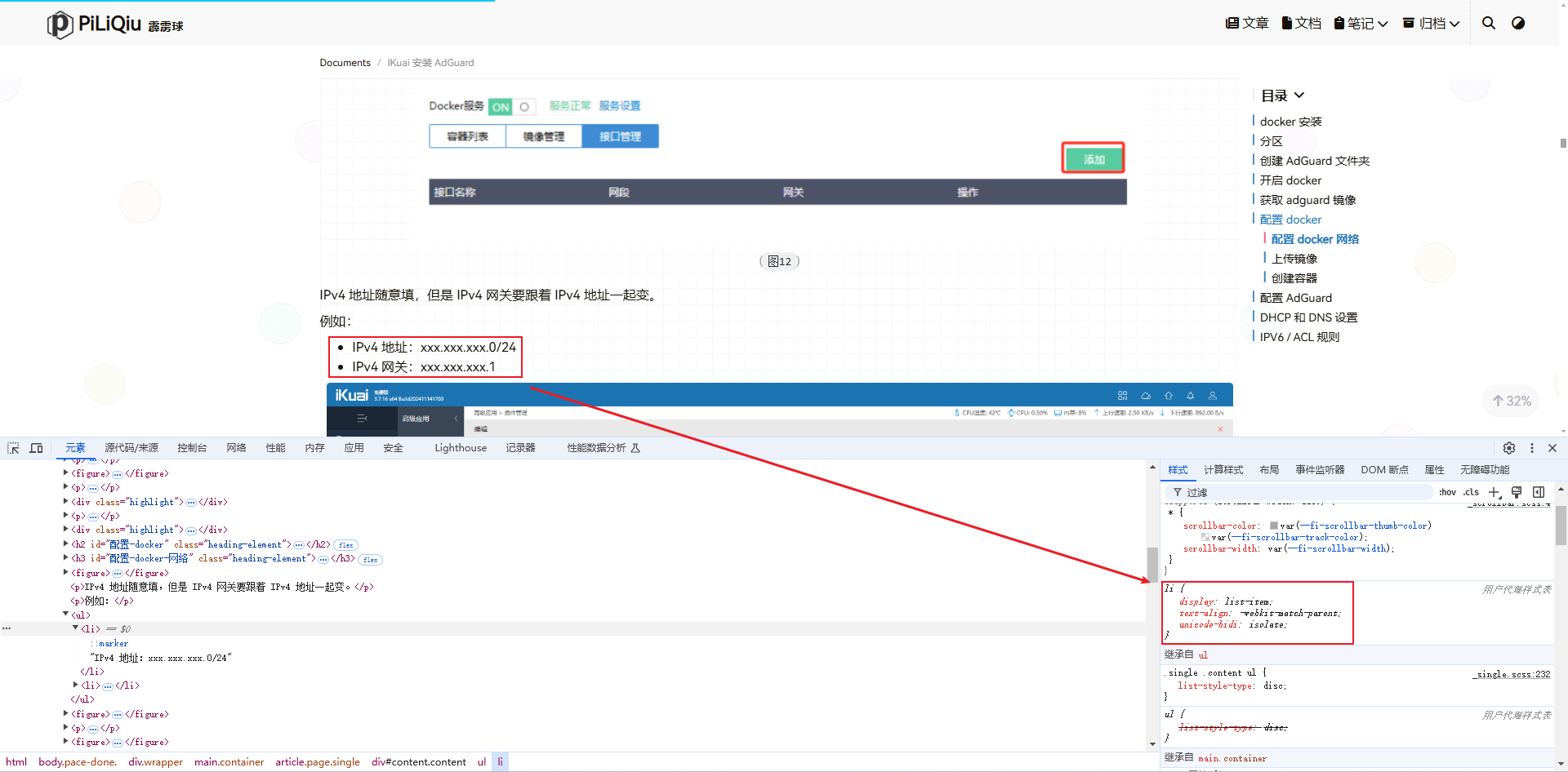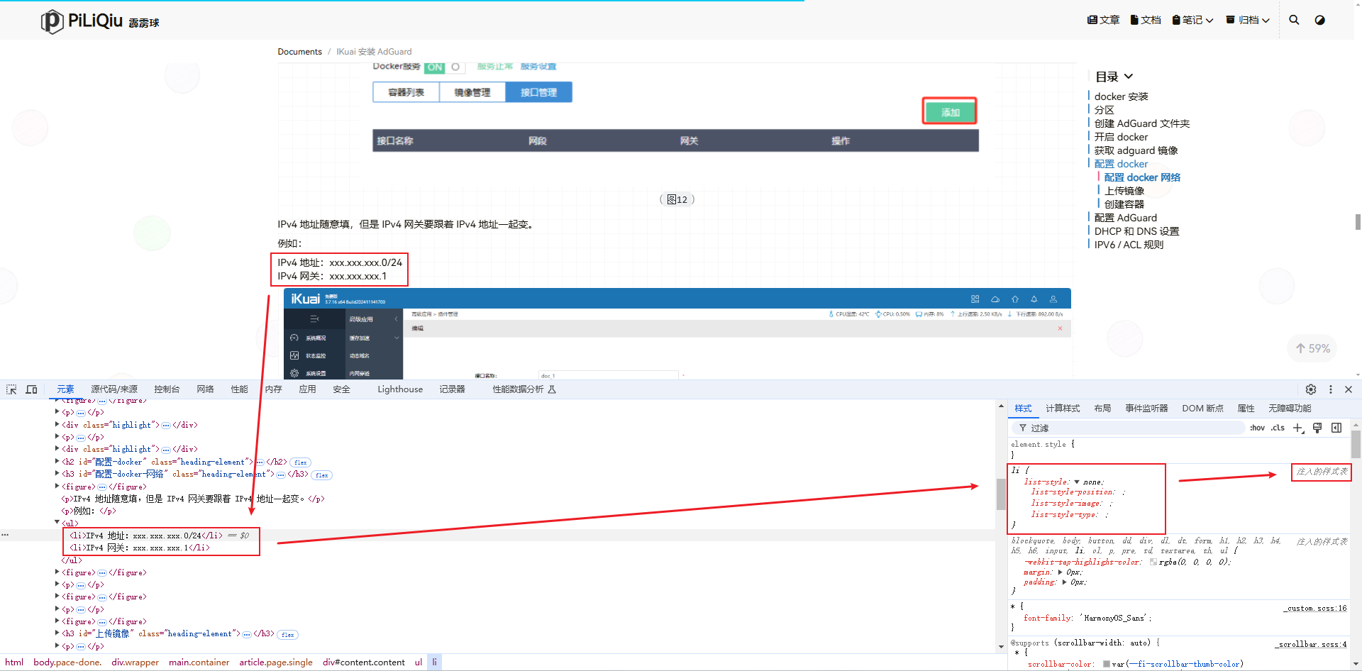 发现 li 标签前的圆点不显示了,通过查看样式,发现 li 标签的样式被 注入样式表 修改了。