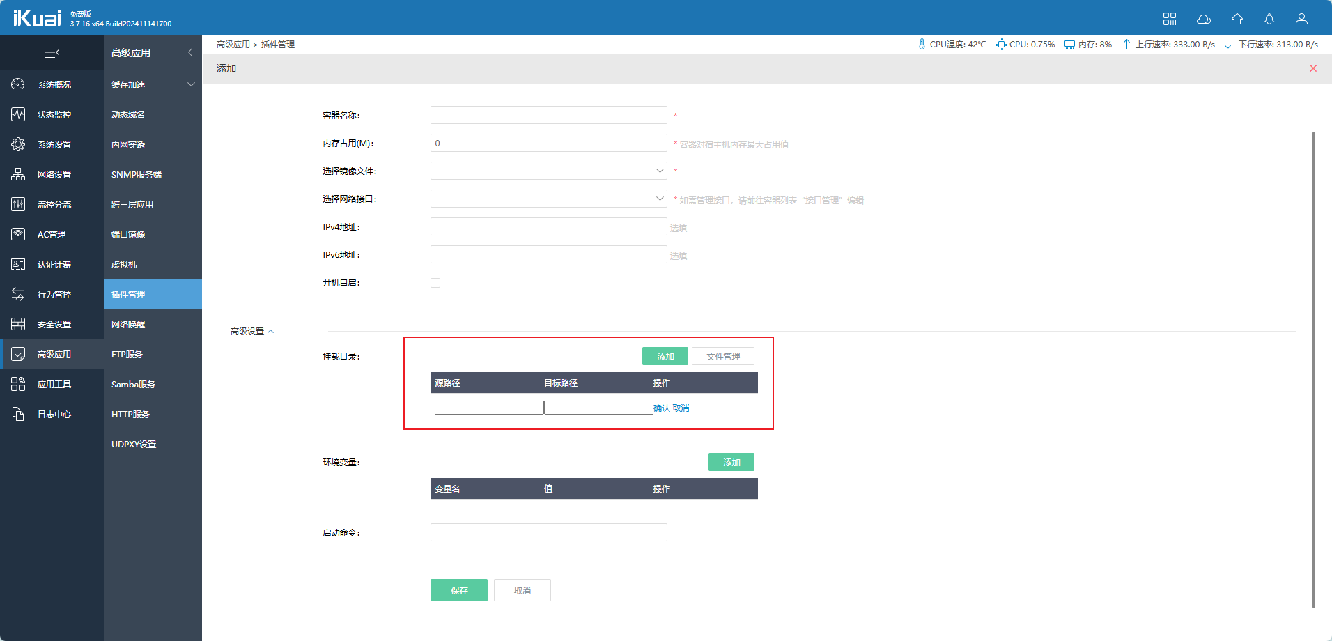 fd32::/64,那么选一个同网段的地址,填fd32::2,fd32::1已经作为网关使用了,不填也可以,会自动分配 - 开机自启:选择上(要不爱快
