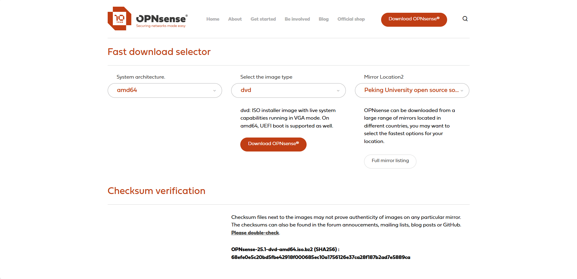 System architecture选择amd64Select the image type选择dvd(iso)Mirror Location选择Peking University,即北京大学镜像站。