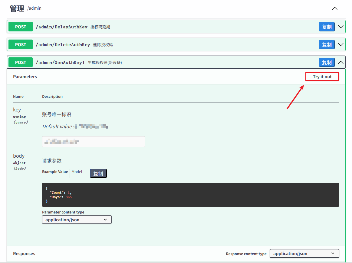 `adminKey`:管理相关接口(例如 `GenAuthKey` 等接口)的授权 `KEY`,若留空每次服务启动随机生成;