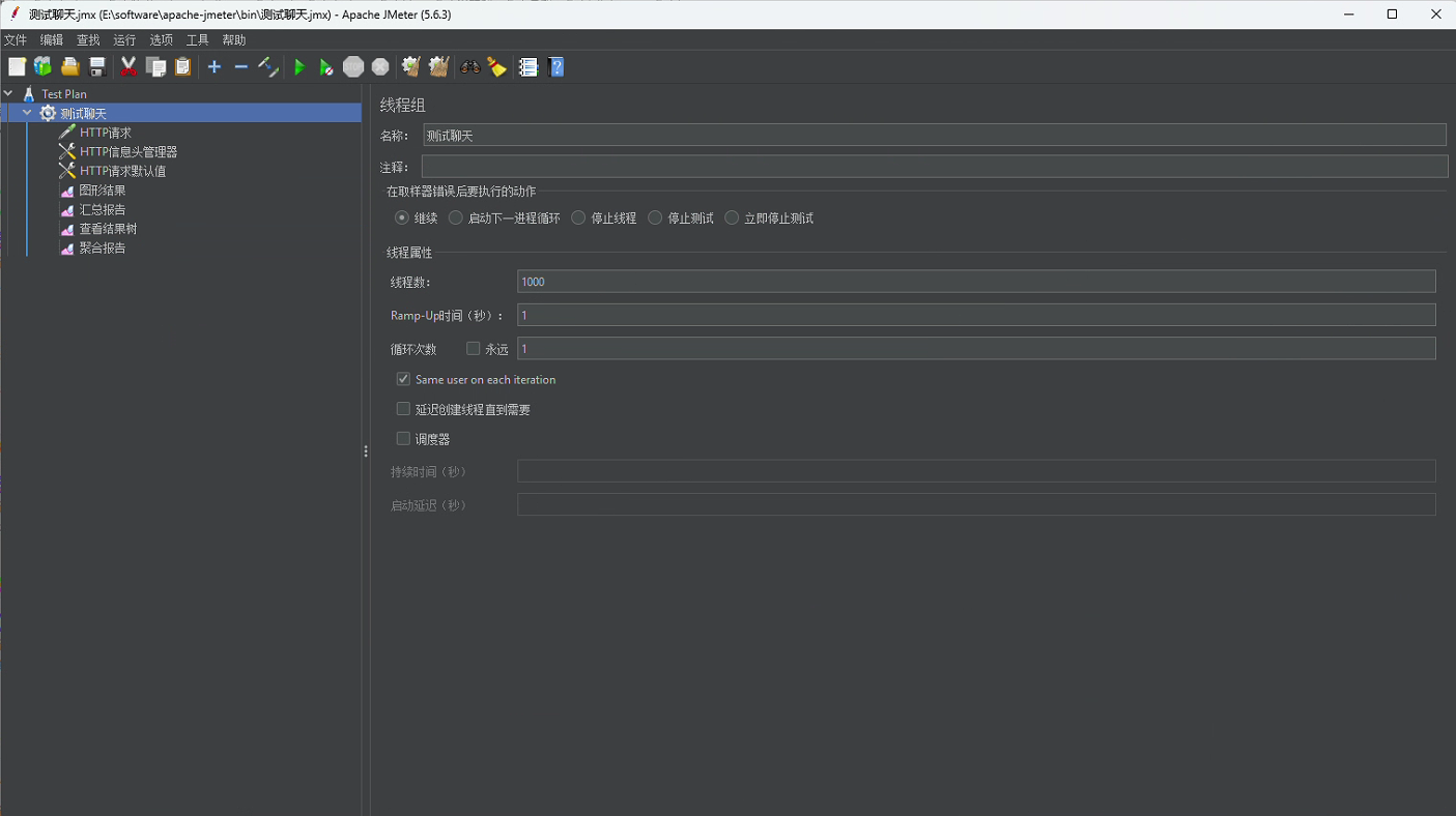 以下是完整的测试计划配置示例,展示了如何设置一个典型的HTTP接口性能测试: