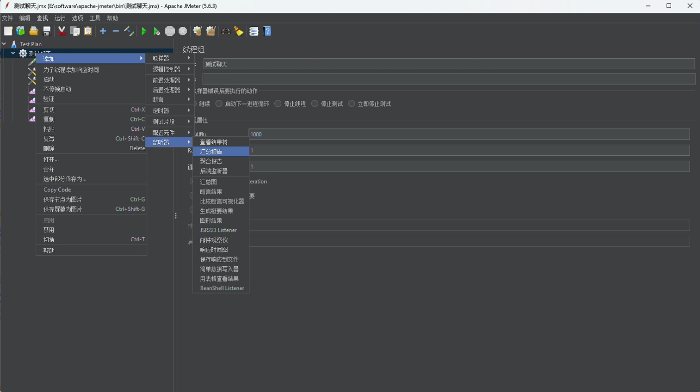 - 聚合报告:可实时显示请求的平均响应时间、中位数、90% 百分位响应时间、吞吐量等数据。